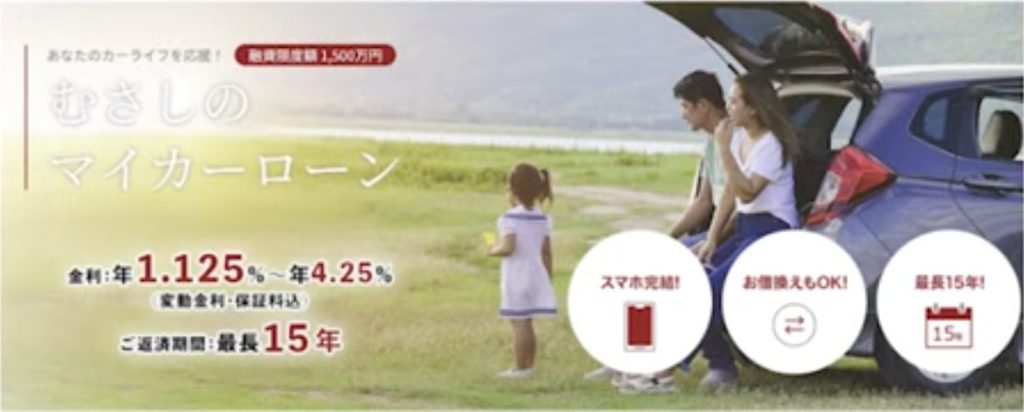 最大1500万円まで借り入れ可能で、1000万円以上の借り入れで最安金利が適用されます。住宅ローン契約者や給与振込口座の利用、エコカー対象などの条件があります。埼玉県だけでなく東京都在住の方も申し込み可能です。