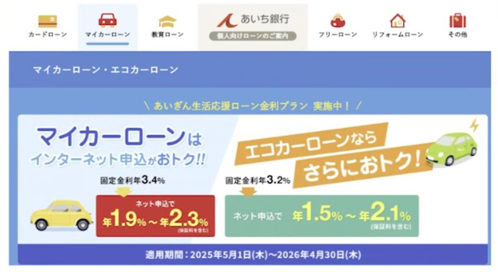 エコカー購入者が対象のキャンペーンを実施しており、ハイブリッド車、天然ガス車、電気自動車などが該当します。環境に優しい車を選ぶと金利の優遇が受けられるローンです。